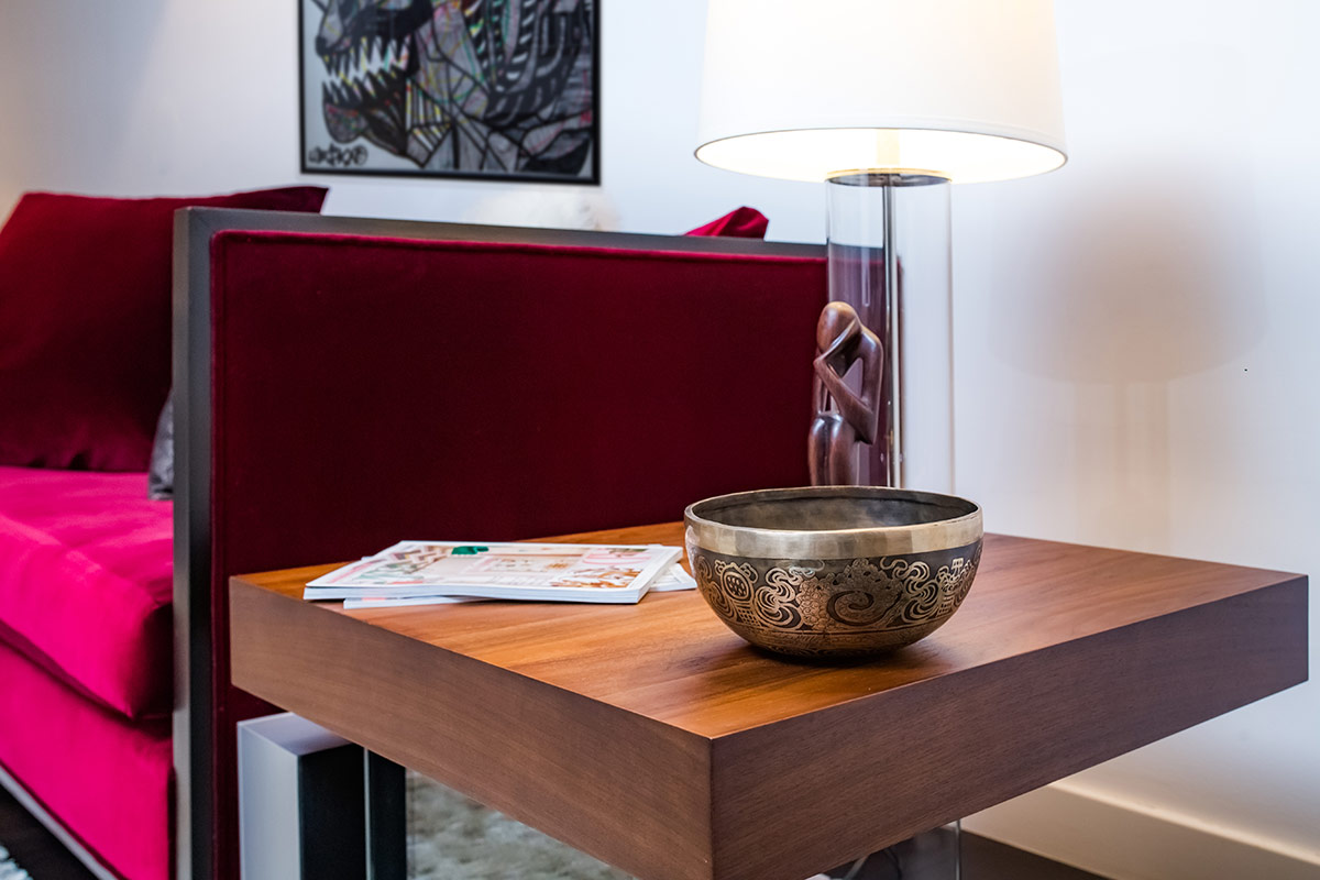 Design a chic and eclectic apartment representing the client’s rich multi-cultural heritage and flamboyant personality. Some of the furniture and art pieces were already owned by the client and shipped from the USA.